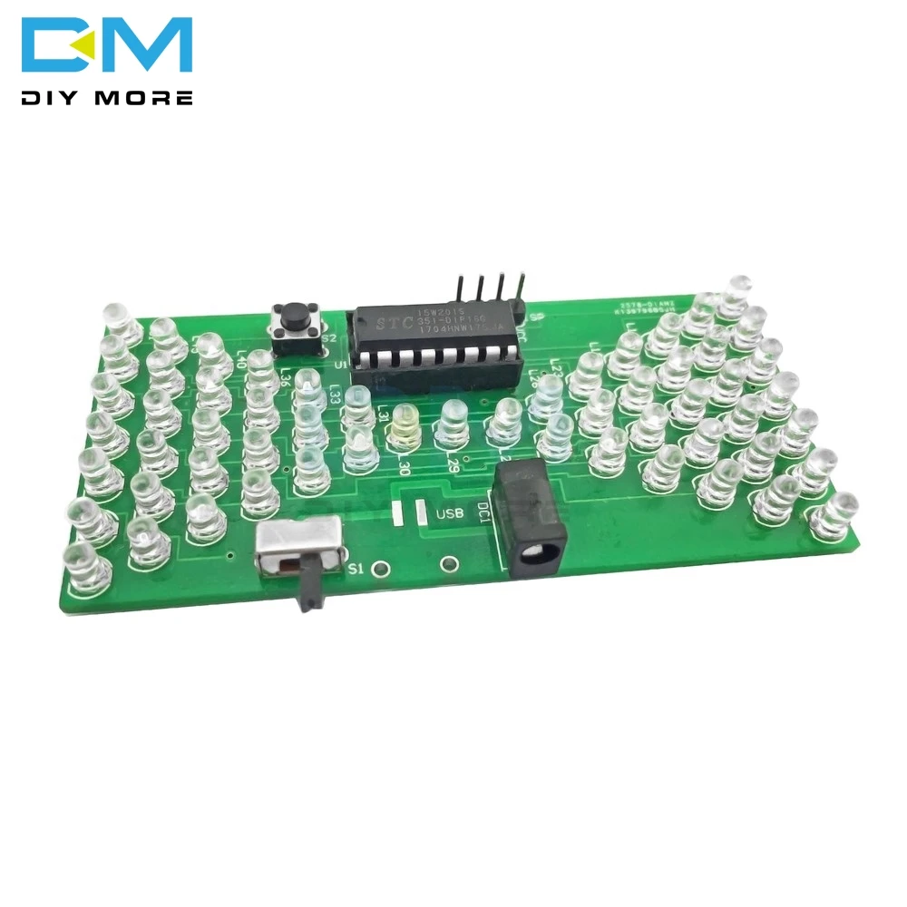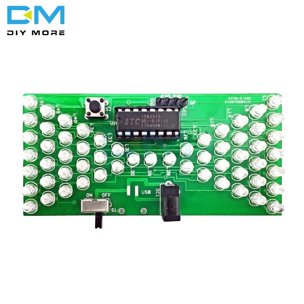 The suite adopts 1.6mm double layer PCB, and the circuit consists of 57 pieces warm white LED. Under the control of MCU program, it displays analog hourglass image. The micro switch can adjust the speed of hourglass, the bright LED quantity at the same time is 28, and it can be used as decoration of small night light. 0.5W power consumption.